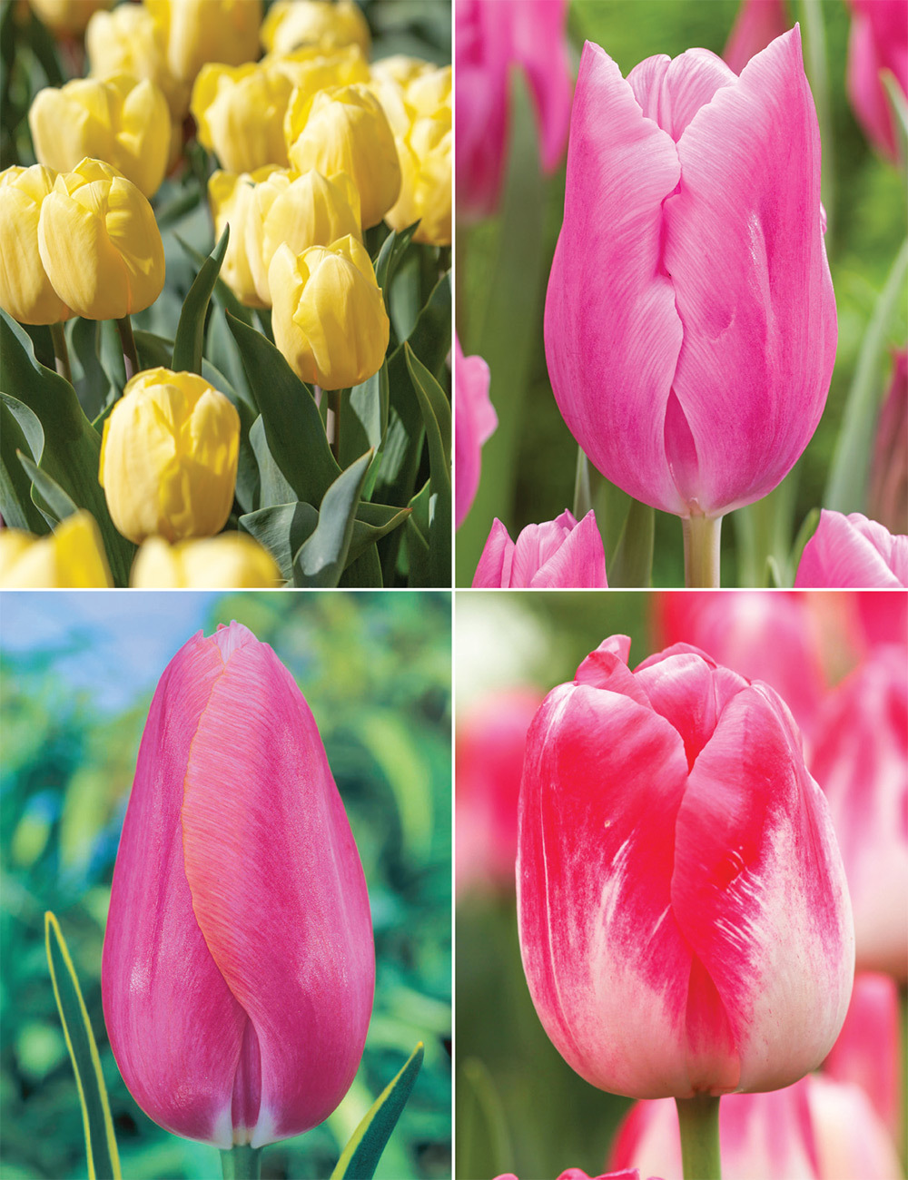 Monet Tulip Collection, three of each variety separately labelled. Monet Tulip Collection includes ‘Monet Swarovski’, ‘Monet Carmine’, ‘Monet Ouveze’ and ‘Monet Tesselaar Diamond Jubilee’.